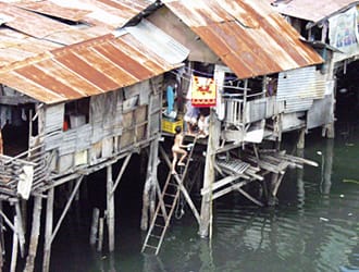 В много от бедните страни в света съществуват обширни бедняшки квартали, състоящи се от колиби, обикновено застроени в края на големите градове. Тези бедни места са съставени почти изцяло от жилища, построени от скуотърите без разрешение от собственика на земята. Въпреки че тези места могат след време да се разрастнат, да се легализират и да не се различават от нормалните жилищни квартали, в началото те стартират с инфраструктура под ексистенц-минимума. При този тип жилища няма канализация, а питейната вода трябва да се закупува от доставчици или да се носи от близък кран. Ако има ток, то той е откраднат от случаен кабел.