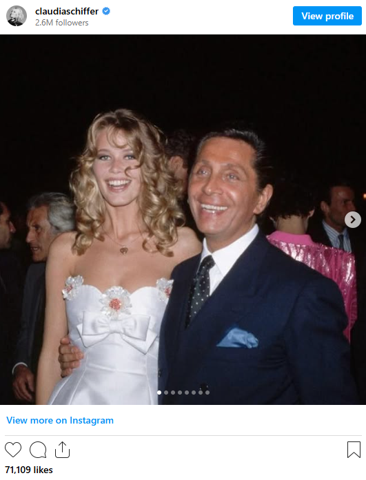 Клаудия Шифър написа: „Съкрушена съм от новината за кончината на моя стар приятел Валентино. Той е истинска легенда и ще живее вечно чрез марката, която е създал и която е въплъщение на вечната елегантност и блясък. Ще помня забавните почивки, които прекарах с него в Майорка, Ибиса и Сен Тропе. Сватбената ми рокля, която съм рамкирала у дома, беше постоянно напомняне за неговата нежна, щедра, мила и лоялна природа. Чувствам се толкова горда, че бях част от живота му.“