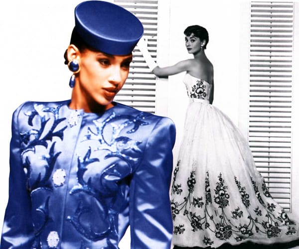 4. Колаж – Одри Хепърн, облечена от Живанши за филма “Приятно лице” (1957) и модел на модната къща – висша мода есен-зима 1989-1990 г. Фото: © Nathan, Enccyclopedie de la Mode, Paris, 1989