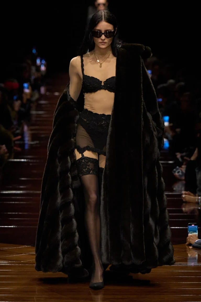 Ревю без котешка пътека – в стилистиката на Balenciaga и това е възможно. Ексцентричният креативен дизайнер на бранда, известен с мононима Демна, събра знаменитости от А-листата, за да представи колекция пролет-лято 2025. Според концепцията, шоуто представляваше своеобразна вечеря, в която нищо не остана скрито и тайно. Моделите дефилираха върху гигантска маса, а сред най-пикантните специалитети на вечерта бяха бодита, корсети, сутиени и жартиери, на които грузинският дизайнер церемониално подари статута на облекло.