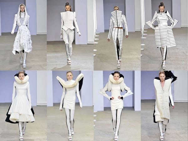 През 2008 г. британският дизайнер Гарет Пю сътворява колекция от футуристични модели, представящи концепцията за жената войн, вдъхновена от еманципацията на жените в обществото. Подчертаните рамене, съчетанието на ципове, козина и многостени в кожена или PVC основа, придават наистина уникално излъчване на една нестандартна колекция. Декорирането на дрехите с геометрични фигури и техники като пачуърк позволяват на талантливия дизайнер да променя осанката на човешкото тяло до неузнаваемост и да го претвори в обект на „борбата между осветеността и затъмняването“ както сам казва Пю. Дизайнерът вижда съвременната жена като боец, защото е способна да се справя със всички трудности по пътя си. Ето защо Гарет Пю брибягва до разнообразни техники за презентиране на тази концепция.