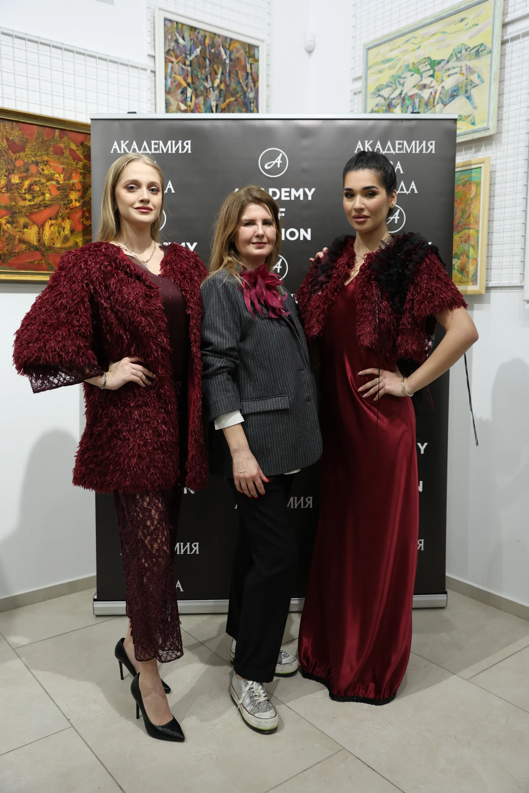 Гери Камеран заедно с Виктория Югова и Марина Цветанова в нейни тоалети и бижута. Фото: Академия за мода / Петър Станев