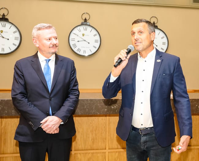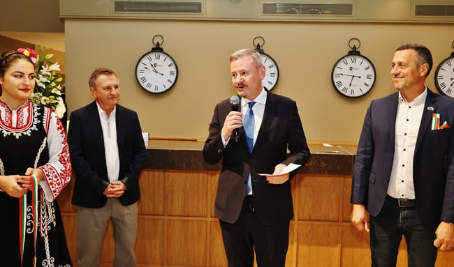 Никола Кузмановски – водещ енолог от винарна „Тиквеш“, също поздрави всички участващи в реализирането на хотела, докато гостите се наслаждаваха на няколко вида вина от неговата винарна.