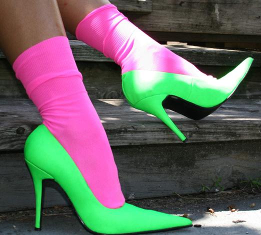 Снимка 01 – http://www.welovecolors.com/img/prod56I17L.jpg – шарено съчетание на найлонови чорапи и обувки